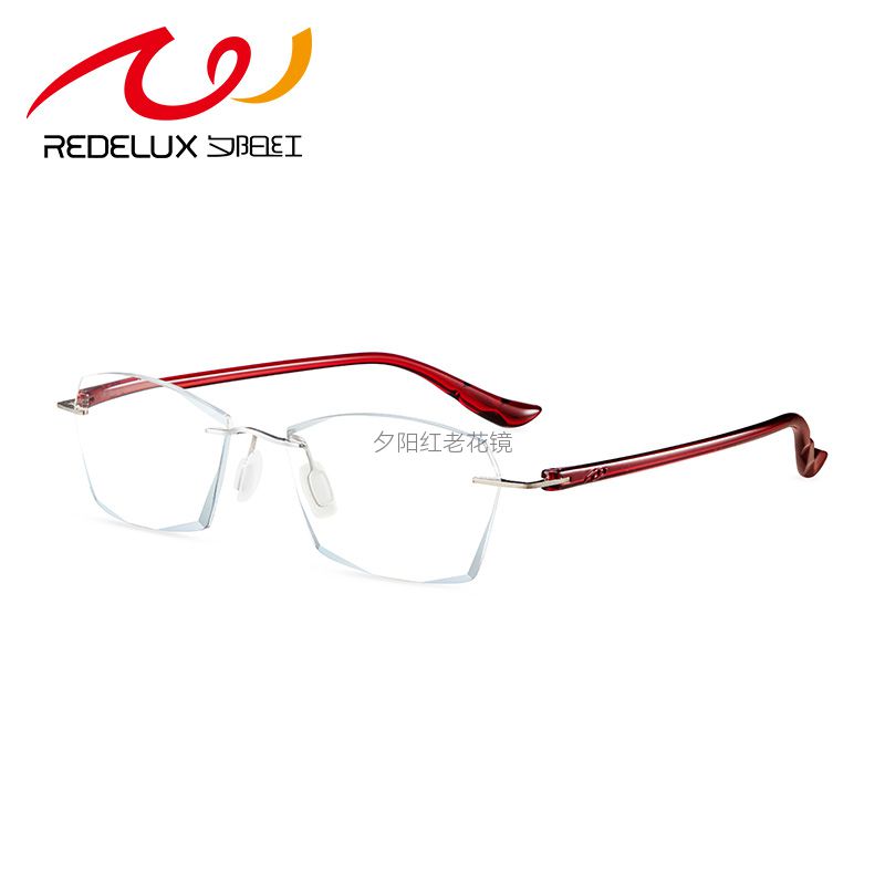 夕阳红老花镜高清无框老人眼镜超轻时尚钻石切边高清老花眼镜女